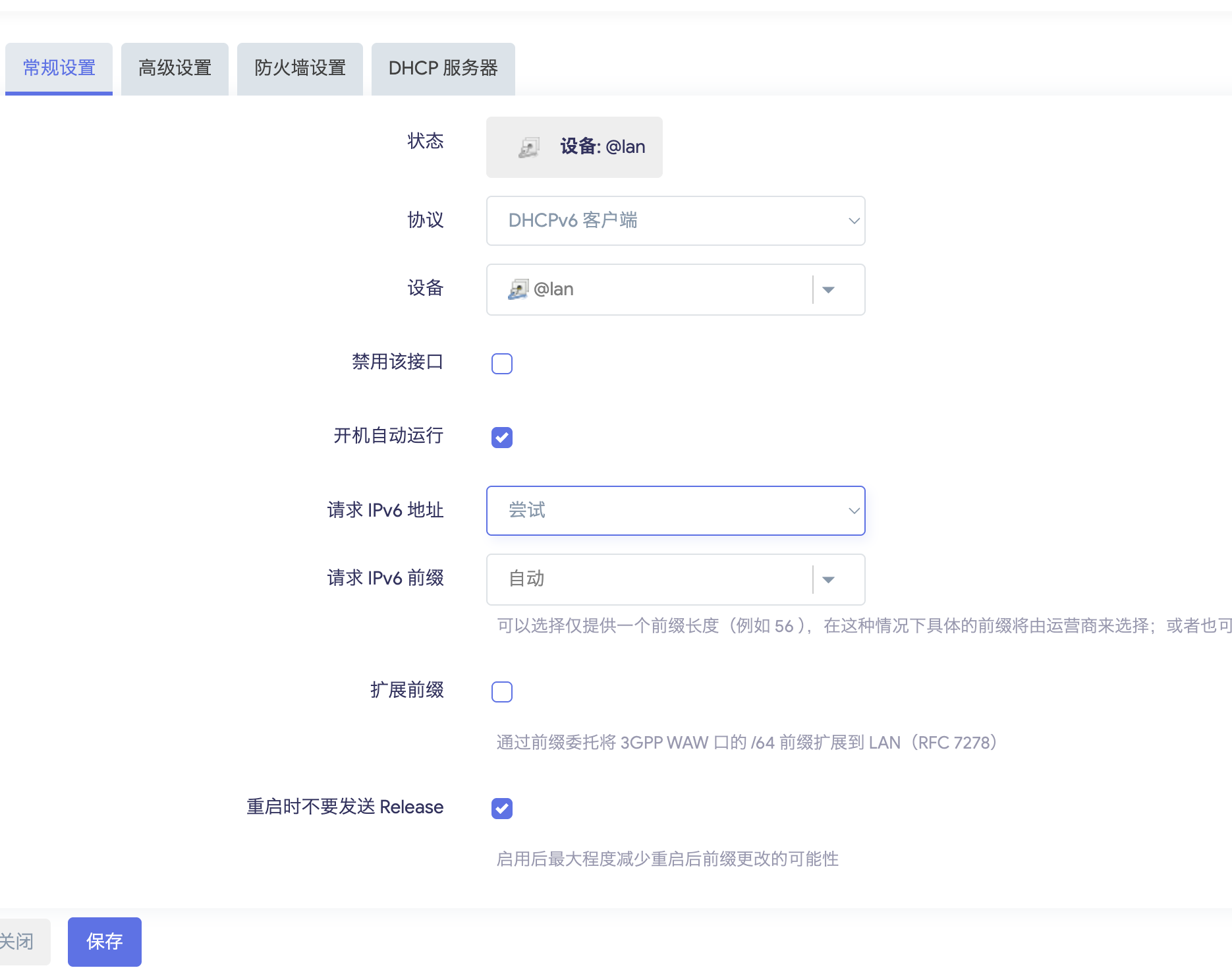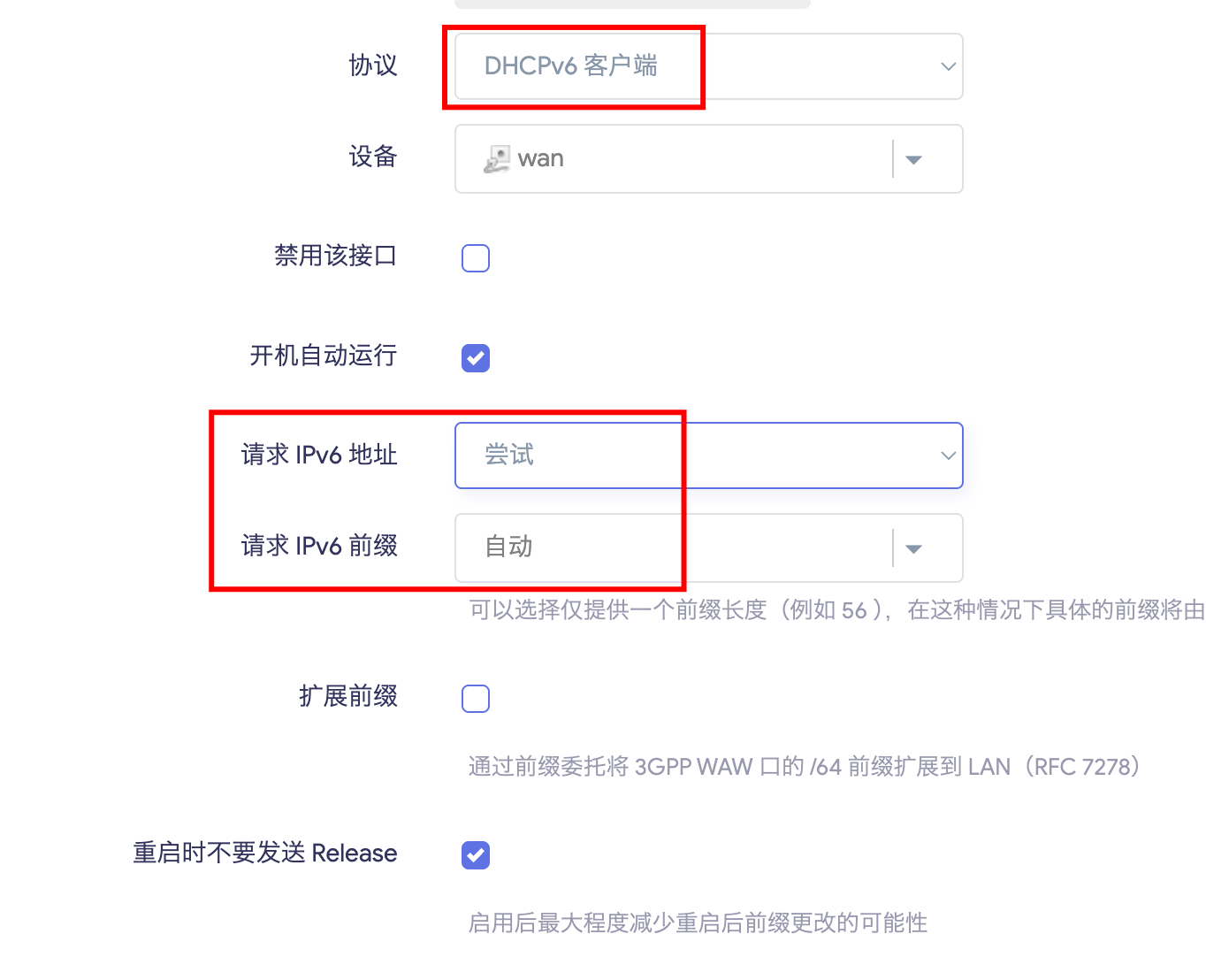 接口)。如果运营商能够通过 PD 下发 IPv6 地址,我们就可以很容易地配置 IPv6。