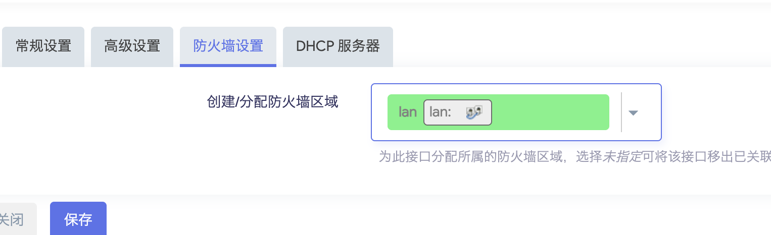。为路由器选择合适的 IPv4 地址与对应的子网掩码即可。最后确认两个接口的防火墙区域配置是否正确。