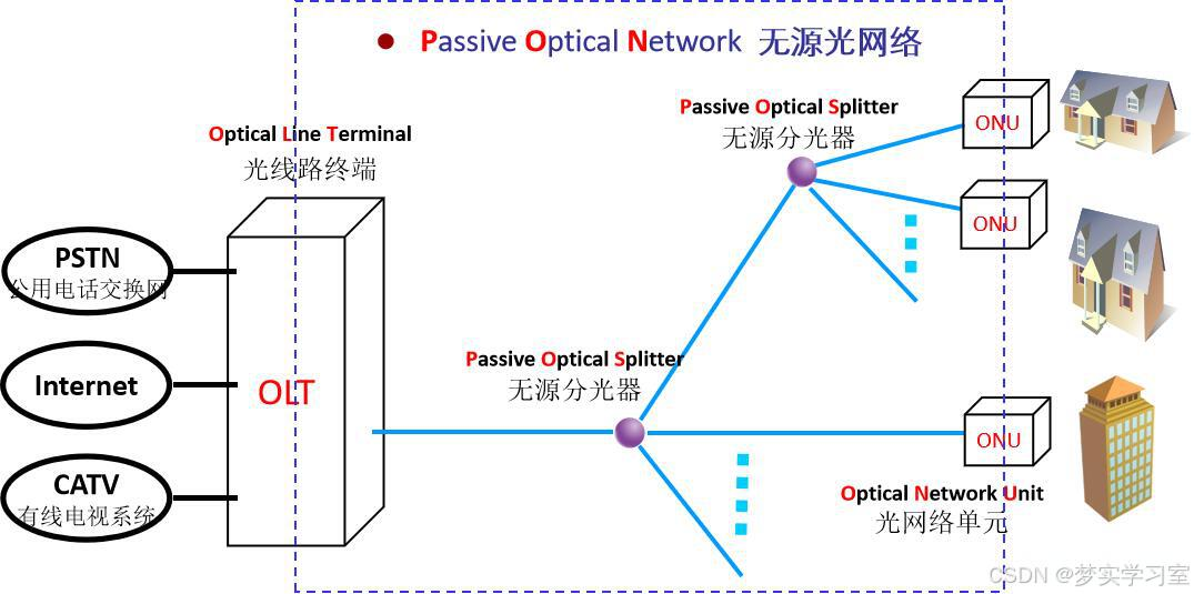 相比之下,无源光网络是一种无需中间有源设备(如放大器、交换机等)的光纤网络。