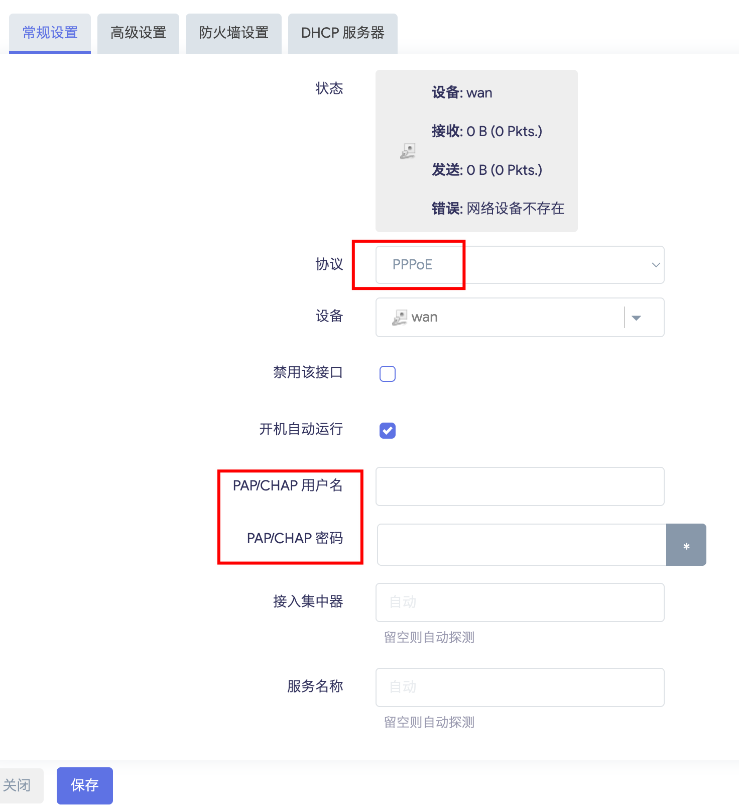 。填入 PAP/CHAP 用户名与密码(即宽带账户与密码)。