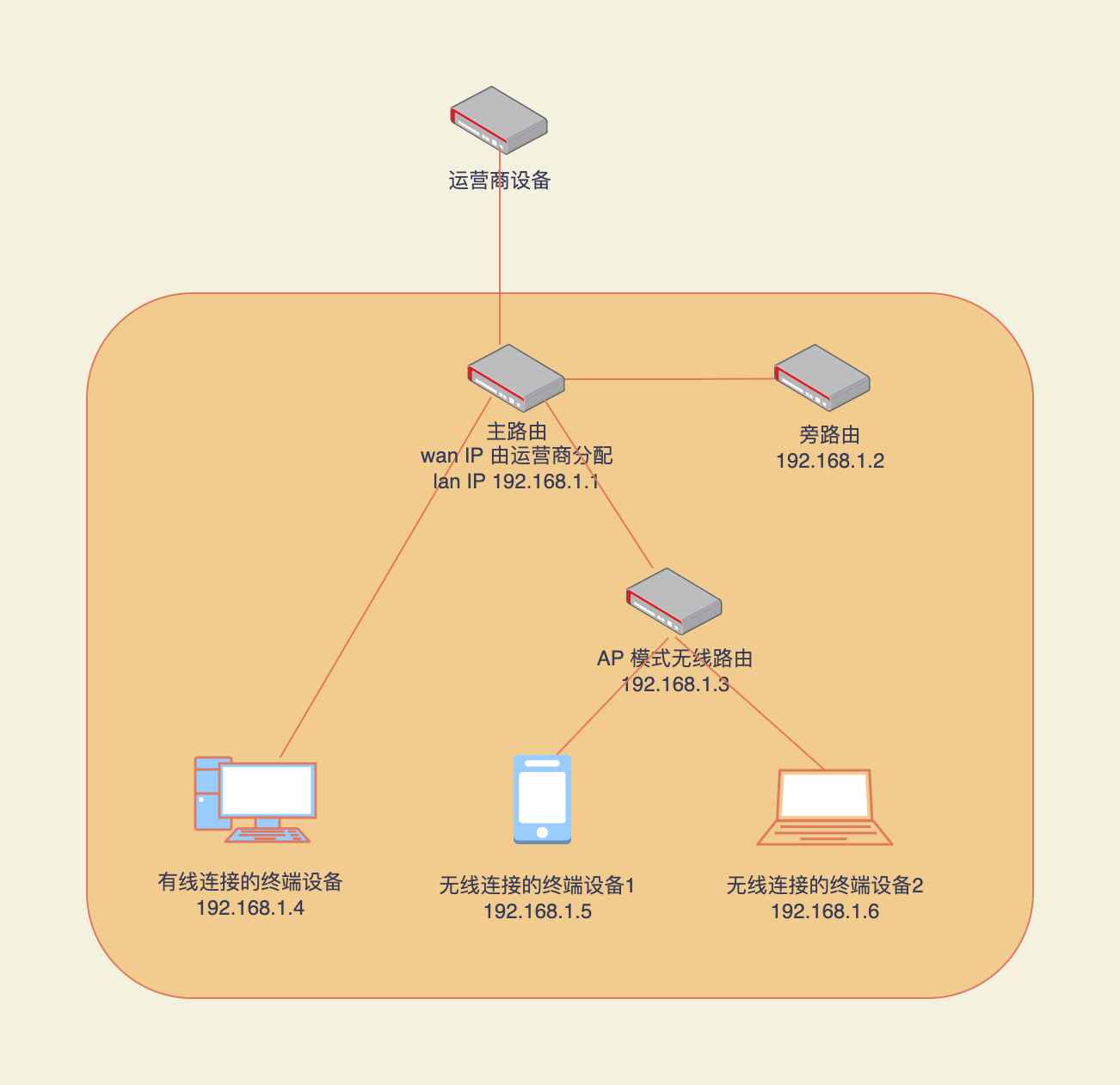 由于一般家庭当中的光猫默认为路由模式,普通用户能修改的设置太少,因此我们可以采用旁路由的配置方式,也就是在主路由器旁边接入一台额外的路由设备,专门负责特定的网络任务,如代理、广告过滤等。